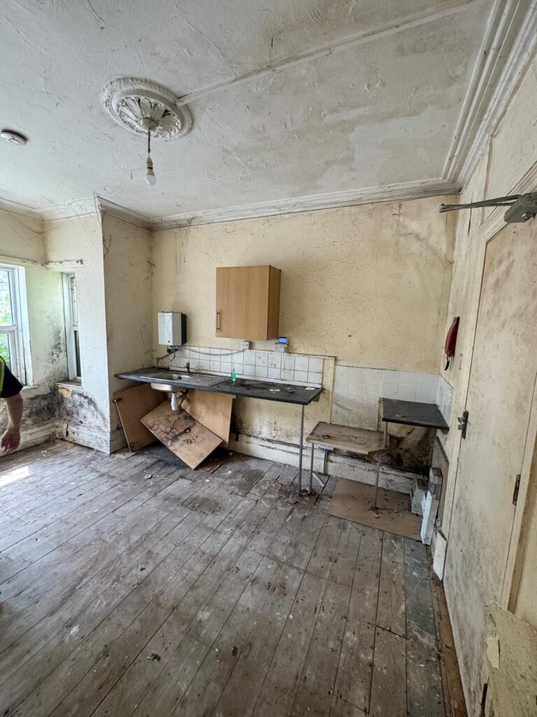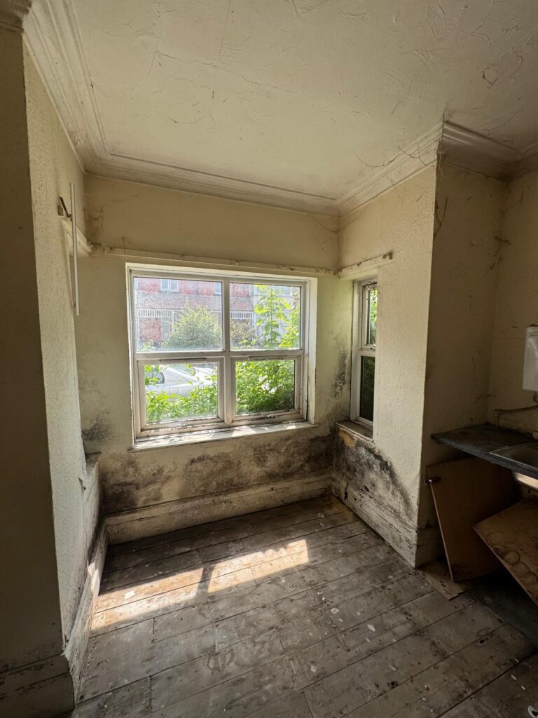 This studio flat had been affected by damp and mould and required a full refurbishment to bring it back to a safe and usable condition. The project began with a full clearance of the existing space, removing all damaged materials and taking the property back to a clean starting point.